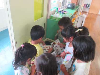 幼稚園に3匹のザリガニがやってきました。ザリガニを飼うために図鑑で調べると、うさぎ組は石を集めてきて家を作っていました。名前をみんなで考えようね!