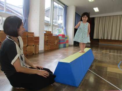 水遊びが短かったので、遊戯室で元気に体を動かして遊びました。