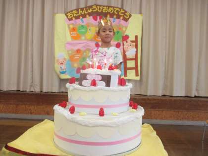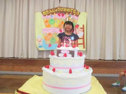 今日は登園日で、8月生まれのお友達の誕生会をしました。