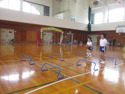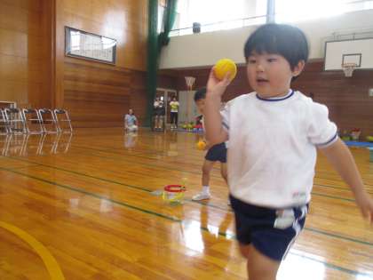 体操教室で毎月、体の動かし方を教えてもらっていますが、今回は「跳ぶ」「くぐる」「投げる」などの運動を取り入れました。