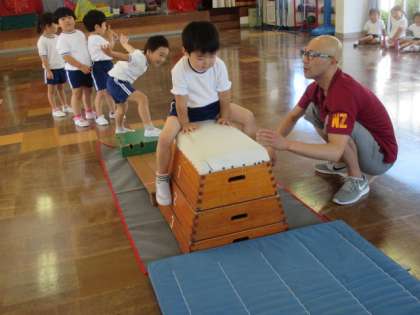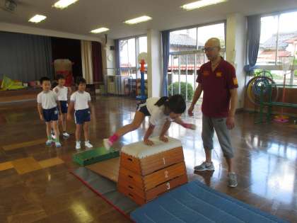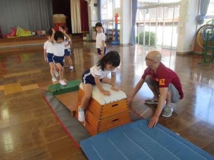 初めは「跳べるかな」と不安そうな表情をしていた子も、先生にサポートしてもらって挑戦した後には「先生できたよ!」と喜んで話してくれました。