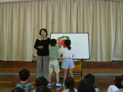 真剣に聞く子、思わず笑顔になる子とお話に引き込まれ、みんな夢中になって聞いていました。