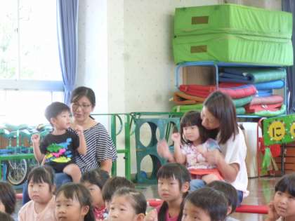 途中、親子の触れ合いタイムとして手遊びが入ったり、パネルシアターに参加させてもらったりと、とても楽しい時間を過ごしました。