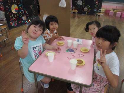 おやつにはホットケーキとカルピスをもらって大喜びでした。