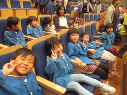 「花さき山」と「つのぶえのうた」を見ました。誰かのためになることをするとどこかで花が咲くという不思議なお話の「花さき山」を、子供たちは真剣な表情で見入っていました。「つのぶえのうた」は手で動物の形をつくったり、手拍子をしたりしながらいろいろな歌を楽しそうに歌っていましたよ。