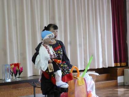 「くいしんぼうのゴリラ」の歌に合わせてエプロンシアターもしていただきました。「どんな食べ物が出てくるかな?」と聞かれて「柿!」という子供たち・・さすが大沢野の子供たち。地域性が出ています!