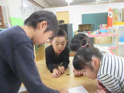 いよいよ今月末にせまったなかよし発表会。子供たちは、練習や劇に使う道具づくりをがんばっています。