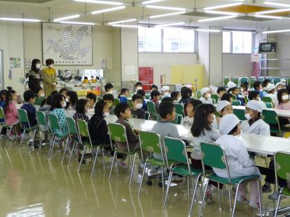 小学校で給食を食べたよ