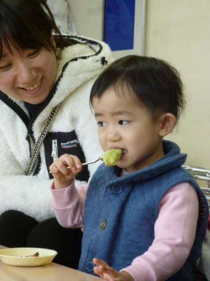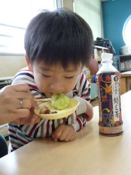 ついたお餅をサークルのお部屋で食べました。とっても柔らかくて甘くて、みんな喜んでぺろりと平らげましたよ。