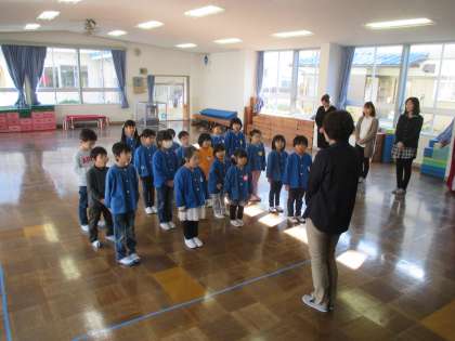 新年を迎え、いよいよ3学期が始まりました。おうちの方と楽しいお正月を過ごした子供たちが「あけまして おめでとうございます」と元気に登園してきました。久しぶりに友達に会い、嬉しそうでした。「おばあちゃんの家に行ってきたよ」「お餅をたくさん食べたよ」「お年玉もらった」と冬休みの楽しかった話を聞かせてくれました。
