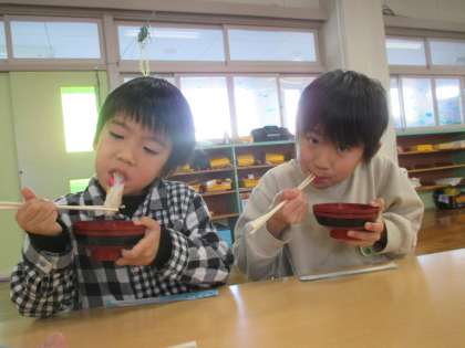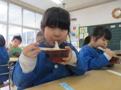 お餅は甘いぜんざいにしていただきましたよ。子供たちが元気に1年過ごせますように!