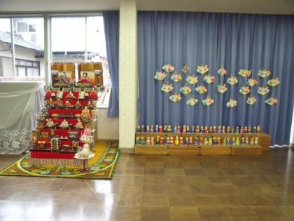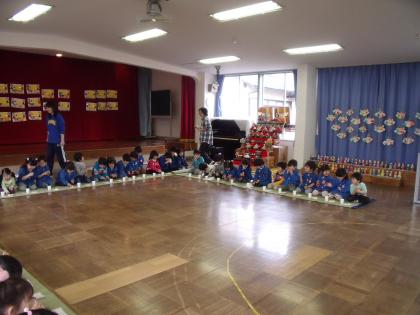 3月3日にひなまつり集会を行いました。園長先生のお話を聞いたり、みんなの作ったおひなさまの紹介をしたりしたあとに、ゲームをしました。年長児がおだいりさまとおひなさまになり、年中・年少児がじゃんけんをします。おだいりさまとおひなさまが勝ったら、肩をもんであげ、年中・年少児が勝ったら抱っこをしてもらいます。最後においしいひなあられをいただきました。