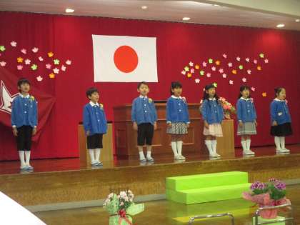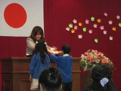 修了証書授与では緊張した表情で証書を受け取ると、「お母さん、ありがとう」と証書を手渡しながらお礼を言っていました。お母さん方も嬉しそうな顔で子供たちの証書を見つめたり、頭をなでたりしていましたよ。