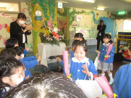 保護者の皆さま、これまで園運営にご理解とご協力をいただき、ありがとうございました。きっと素敵な小学校生活が子供たちを待っていると信じています。