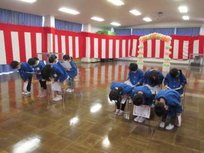4月から一つ進級する子供たちに、大きくなるということはどんなことなのかお話をしました。体だけでなく、友達を助ける心や一緒に楽しむ心が大きくなっていること、自分のことだけでなく友達のことも大切にするということが、お兄さん・お姉さんになるということだよと言うと頷く子供たちもいて、子供たちの心の育ちが感じられました。