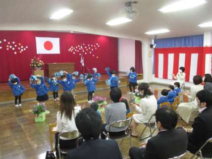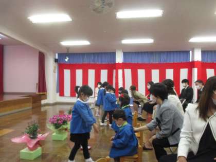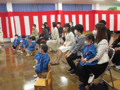 気持ちの良い青空の下、6人のたんぽぽ組さんの入園式を行いました。お家の人と一緒に手をつないで入場したり、担任の先生に名前を呼ばれて恥ずかしそうに返事をしたりする姿がとてもかわいらしかったです。
