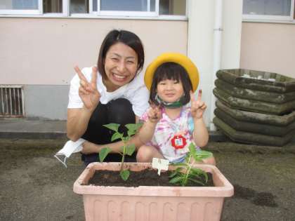 今日は登園した友達から、お家の方と一緒に花の苗植えをしました。