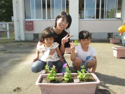 マリーゴールドやペチュニア等、たくさんの花の種類があり、迷いながら「ピンクと紫と...黄色!」と好きな花を選んで楽しみながら植えていました。ご協力をありがとうございました。