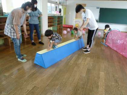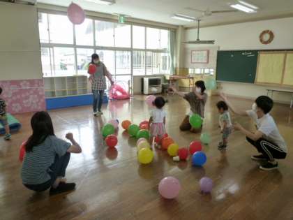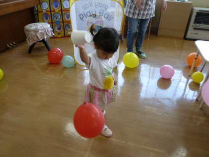 あか、あお、きいろ・・・いろいろな色の風船でほわほわほわ・・・。