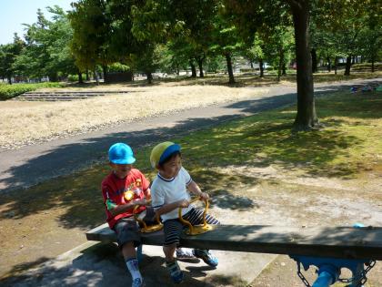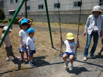 6月3日(水)西大沢ふれあい公園へお散歩へ行ってきました。3歳児にとってはじめての散歩だったので、5歳児の仲良しグループの友達と手をつないで歩きました。ふれあい公園では、幼稚園に無いアスレチックやブランコ・シーソーがあり、子供たちは好きな遊具でおもいっきり体を使って遊んできました。ドングリやマツボックリ拾いを楽しむ子もいました。6月25日のピクニックが楽しみです。
