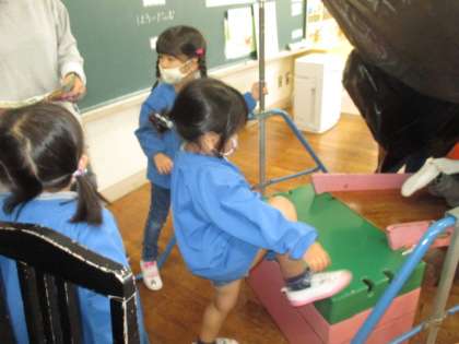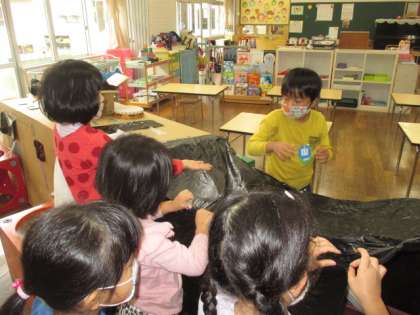 隣のクラスから3,4歳児が気になって来ると「入ってみる?」と優しく声をかけるお姉(兄)さんな姿も見られて頼もしかったです。
