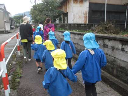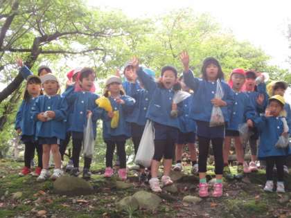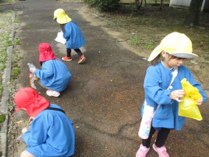 「このドングリ双子だよ!」「マツボックリもあるよ!」と、秋の木の実を見付けては友達や先生に嬉しそうに報告していました。ドングリは、まだ緑色でこれからまだまだ色づいて落ちてくると思うので、みんなでまた、拾いに行けたらと思います。