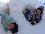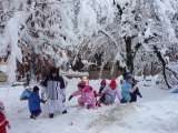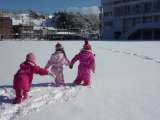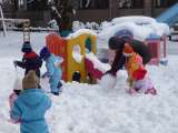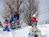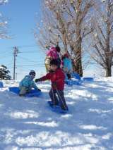 雪遊び。 早速そりを楽しむ子。先生と雪合戦を楽しむ子。雪だるまを作る子。 そして...