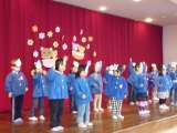 次は、みんな遊戯室に集まり、手遊びや歌や体操を披露しました。 かわいいお友達は、...