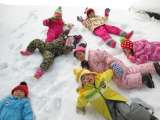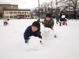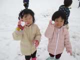 午後から園庭に出て、雪遊びをしました。雪の上を歩いて足あとをつけたり、寝っ転が...