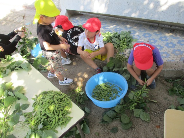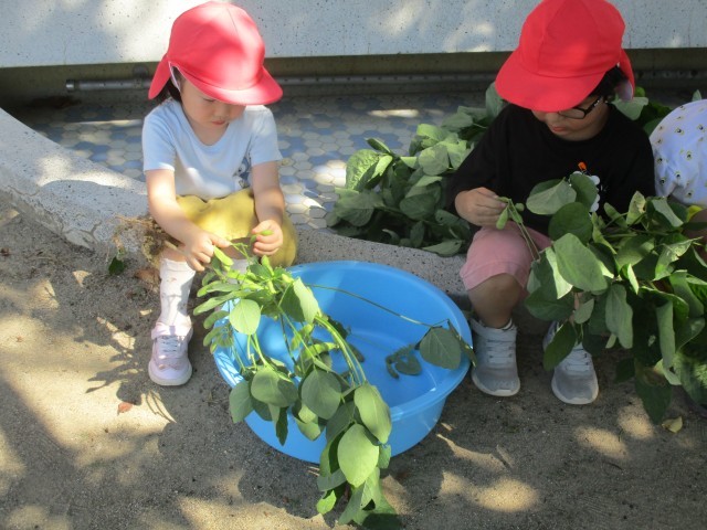 枝豆の収穫(5歳児)