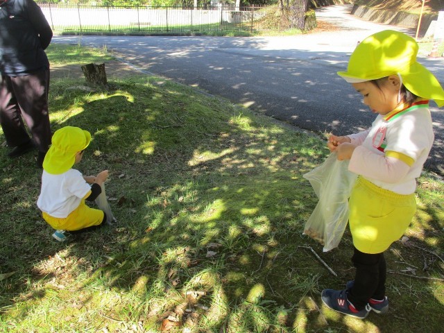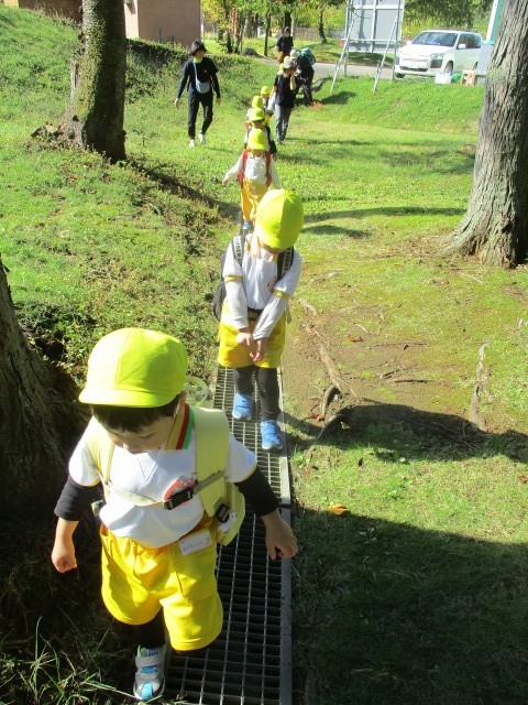 どんぐり拾いや芝生をかけっこ、リュックを背負ってバスまでの道中も楽しみながら歩き「もっと遊びたかった」「トンネル、また行きたい」と話す子もいました。楽しかった遠足をまたお家の人と出かけるのも楽しいですね。遠足の準備ありがとうございました。