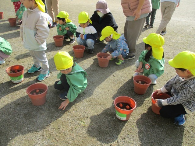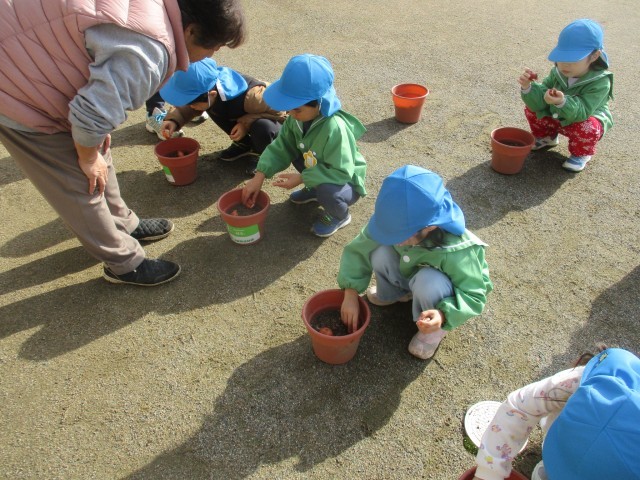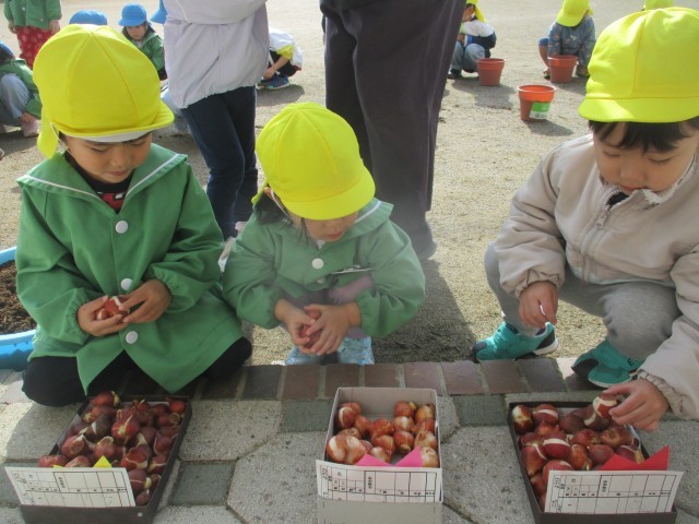チューリップの球根の植え付けをしました(3・4歳児)