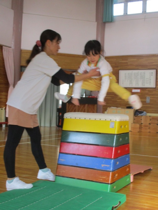 体操教室(5歳児自由参観) 公開日 2025/12/18 更新日 2025/12/18 今日のできごと 12月17日(水) 今日の体操教室は「跳び箱」お家の方が参観され、より張り切っていた子どもたちです。これまで講師の先生方に教わってきたことを生かし、5段、6段の開脚跳びに挑戦しました。少し怖いなと思っていた友達も挑戦していてかっこよかったです。