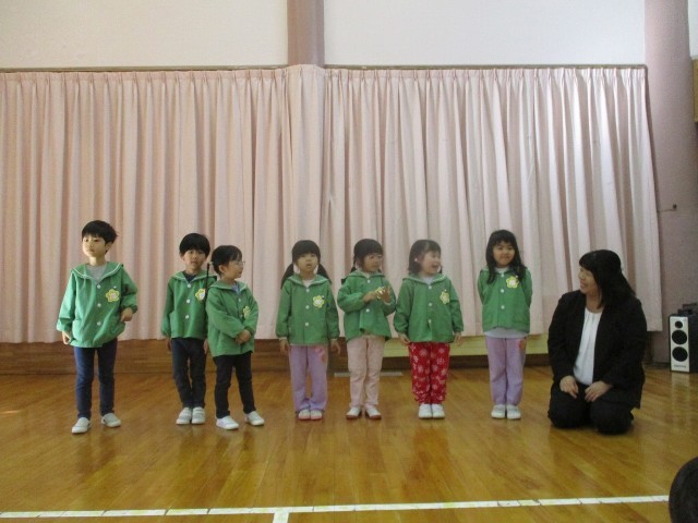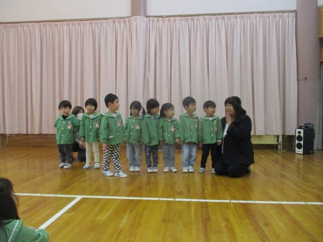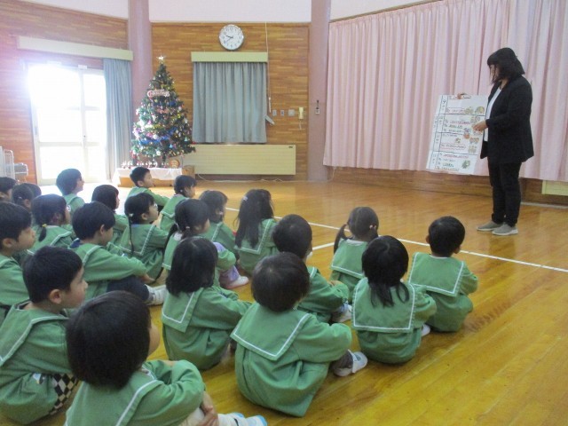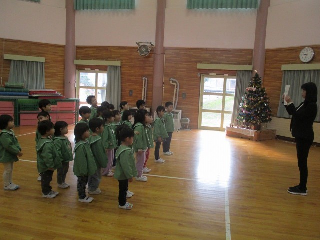 2学期の終業式があり、園長先生から冬休み中は「早寝・早起き・朝ごはん」「いろいろな挨拶をしましょう」とお話がありました。