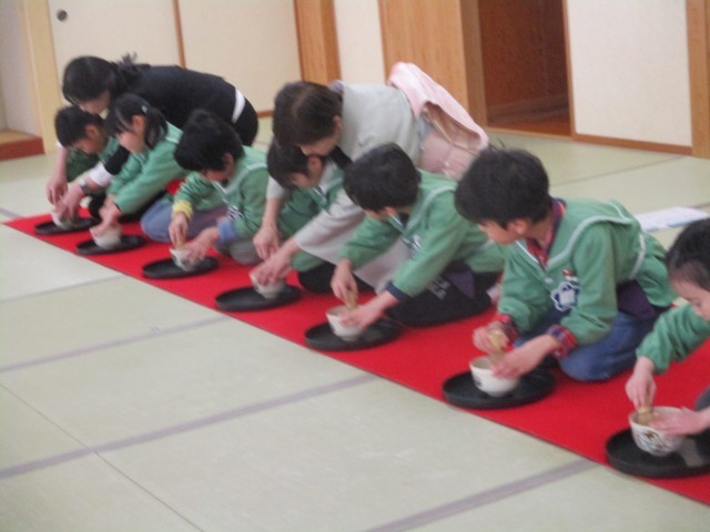 お家の方がお菓子を食べたり、自分が点てた抹茶を飲んだりされる様子をじっと見ていた子どもたち。とても嬉しかったことと思います。子どもたちの頑張りや成長を感じる時間となりました。親子でじっくり振り返っていただけたら、と思います。