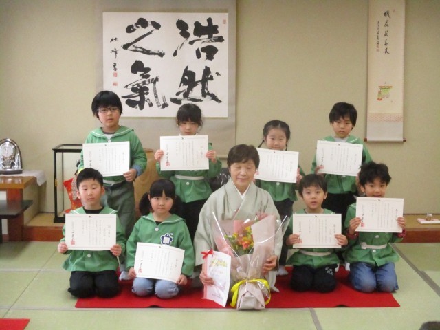 これまで1年間、講師の先生に教えていただいた作法やお手前をお家の方に見ていただく「親子茶会」が速星公民館でありました。最初に普段の子ども同士の教室の様子を見ていただきましたが、始めたばかりの頃は苦手と言っていた抹茶も子どもたちなりに美味しいと感じられるようになり、スーッとすする姿も見られました。子どもたちがふくさを付ける姿や、立ち方、座り方、お茶碗の持ち方等、普段とは違う表情や姿にも驚かれたのではないでしょうか。