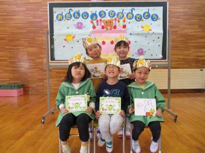 今日は、4月生まれのお友達の誕生会があり、5名のお友達を歌や拍手でお祝しました。担任の先生に、おうちの人から預かっていたお祝いのメッセージをよんでもらうと嬉しそうに聞いていました。