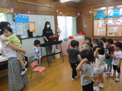 読み聞かせをしてもらったお礼にみんなで「すてきなパパ」「カエルの歌」を歌いました。「みんな上手だね」と保護者の方にほめてもらい、子供たちはとても嬉しそうでした。アットホームな楽しいひと時となりました。
