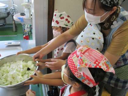 カレーづくり パート2 公開日 2021/07/16 更新日 2021/07/16 今日のできごと 切り終わった夏野菜を給食室に運びました。「お願いします!」と給食の先生に声をかけ、部屋に戻りました。「早くできないかな」「楽しみだね。早く食べたいね」と心待ちにしている子供たちでした。