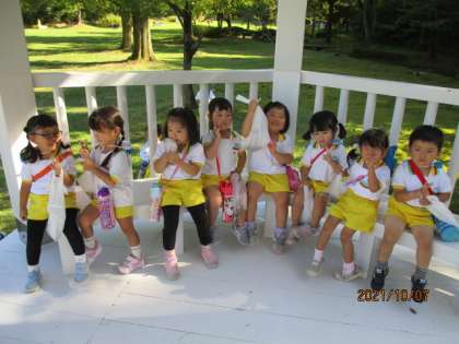 春の遠足の時には、「歩けない…」「疲れたよ…先生、抱っこして」と言っていた子供たちが、年長児や年中児に手をつないでもらい最後まで元気に歩いていて驚きました。お家でも楽しかったお話をたくさん聞いてあげてくださいね。