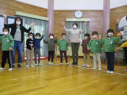 お楽しみ会では、クリスマス会が近いので、クリスマス会で歌う歌やフォークダンスをしました。子供たちは「早くクリスマスが来てほしいね」と楽しみにしていました。