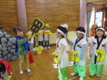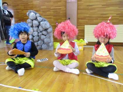 発表会ごっこ(5歳児 ぞう組) 公開日 2021/12/06 更新日 2021/12/06 今日のできごと 12月2日(木) 発表会も終わり、合奏や劇など、役柄を交代しながら楽しんでいます。運動会の時と同様に友達のセリフや動きをよく覚えていて、自信をもって演じる姿に成長を感じています。緊張も解けて、本番より伸び伸びと演じているように見えました(笑)「明日もしたい」「どの役しようかな」と、次の役柄を考えていました。