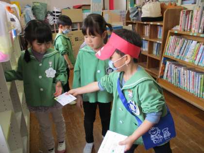 給食後、挨拶当番が年賀はがきを配りに行きます。切手にスタンプを押し、仕分けをして一人一人に手渡していました。