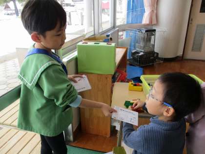 先日よりお正月に届いた年賀状を真似て、幼稚園でも年賀状を書き始めました。友達のことを思いながら「また、一緒に遊ぼうね」「大好きだよ」「今度は同じグループになりたいね」など、丁寧に書いていました。