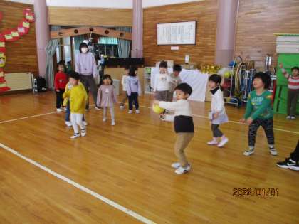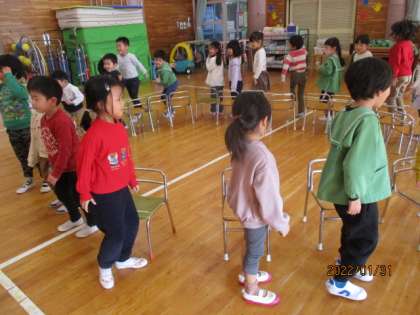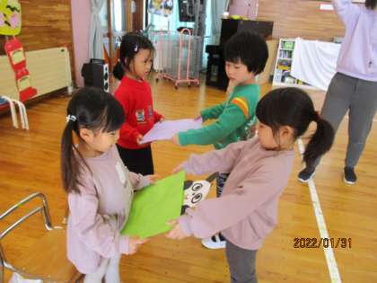 お別れ会(年中児 うさぎ組) 公開日 2022/02/04 更新日 2022/02/04 今日のできごと 1月31日(月)は、2人の友達が転園するため、みんなでお別れ会をしました。「2人とたくさん遊びたい」という意見から、みんなで練習をしてきたダンスやドッジボール大会、椅子取りゲームをして遊びました。たくさん遊んで楽しい思い出をつくることができ「また会おうね」「いっぱいあそんでくれてありがとう」と笑顔でお別れをしました。 新しい園でも元気でね。またいつか会おうね!