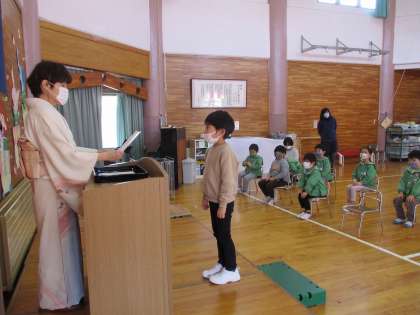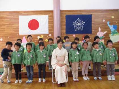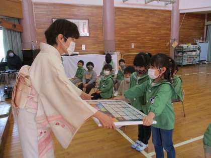 本日は、本当であれば親子茶会が予定されていた日。新型コロナウイルス感染拡大で中止となり、残念に思っていた子供たち。お茶教室の松江先生に来ていただき、一人ずつおしるしをいただきました。手にしたおしるしを見ながら、先生に「頑張りましたね」「よくできました」と声をかけてもらって嬉しそうにしていました。最後に感謝の気持ちを込めて、お花と歌のプレゼントをしました。優しくて大好きな松江先生。子供たちもお茶の作法で学んだ座り方、立ち方、お茶の点て方を忘れずに、大切な思い出として心に刻まれたと思います。
