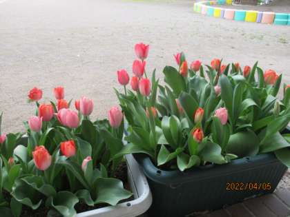 いよいよ令和4年度がスタートします。幼稚園の桜も咲き、子供たちが植えたチューリップも色とりどりの花を咲かせています。明日は、1学期の始業式と着任式があります。みんなに会えることを楽しみにしています。