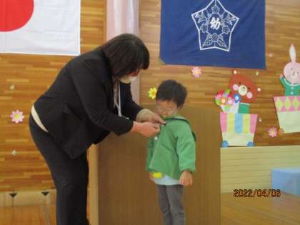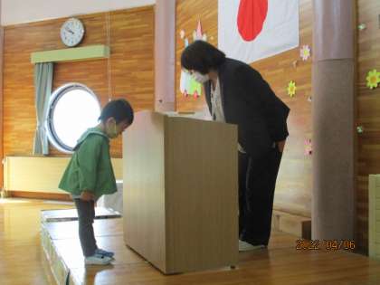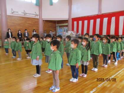 新しい年度が始まりました。着任式・始業式をしました。新しい名札を園長先生からいただき「新しい名札だ」「ぞう組の青い名札だね」と嬉しそうな子供たちでした。担任の先生の紹介もあり「今年もいっぱい遊びましょうね」と話をしました。