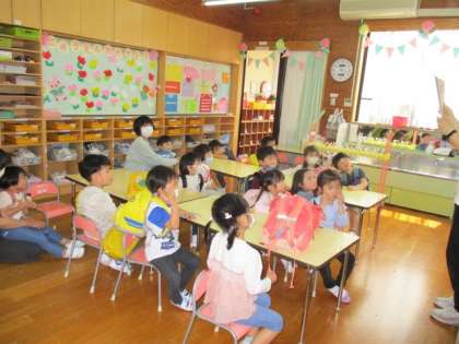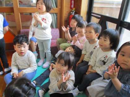 今日のりす組 2 公開日 2022/04/13 更新日 2022/04/13 今日のできごと 遊戯室で体を動かして遊んだ後、歌をいくつか歌いました。そこへ、園長先生が来られ「どんなチューリップが咲いたの?」と聞かれ、小さな手でチューリップを作って見せていて可愛かったです。 帰りの会では紙芝居に集中していた子供たちです。明日からいよいよ給食が始まります。初めてのことに戸惑うお子さんもいるかと思いますから、少量から始め、お子さんに対応して進めていきます。明日も元気に来てくださいね!
