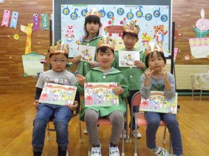 今日は4月生まれの誕生会があり、5名の友達をお祝いしました。誕生会では、担当の年長児が司会をし、みんなで歌ったり、インタビューをしたり、家族からのメッセージを聞いたりしてお祝いをしています。